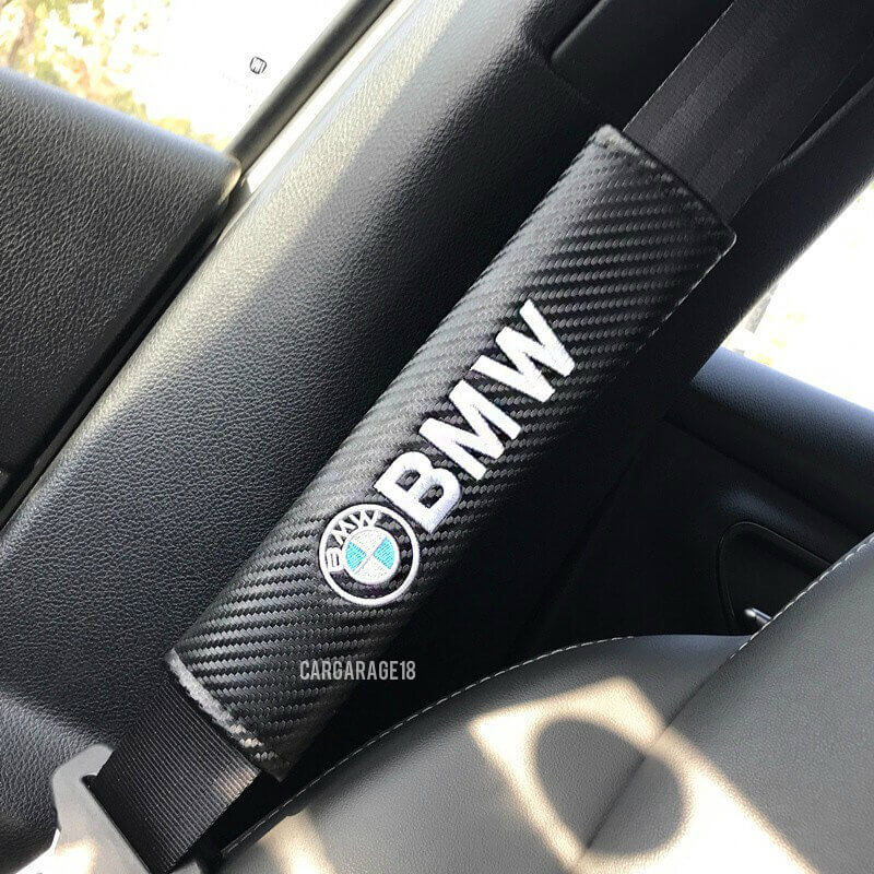 BLACK CARBON BMW LOGO SEAT BELT COVER